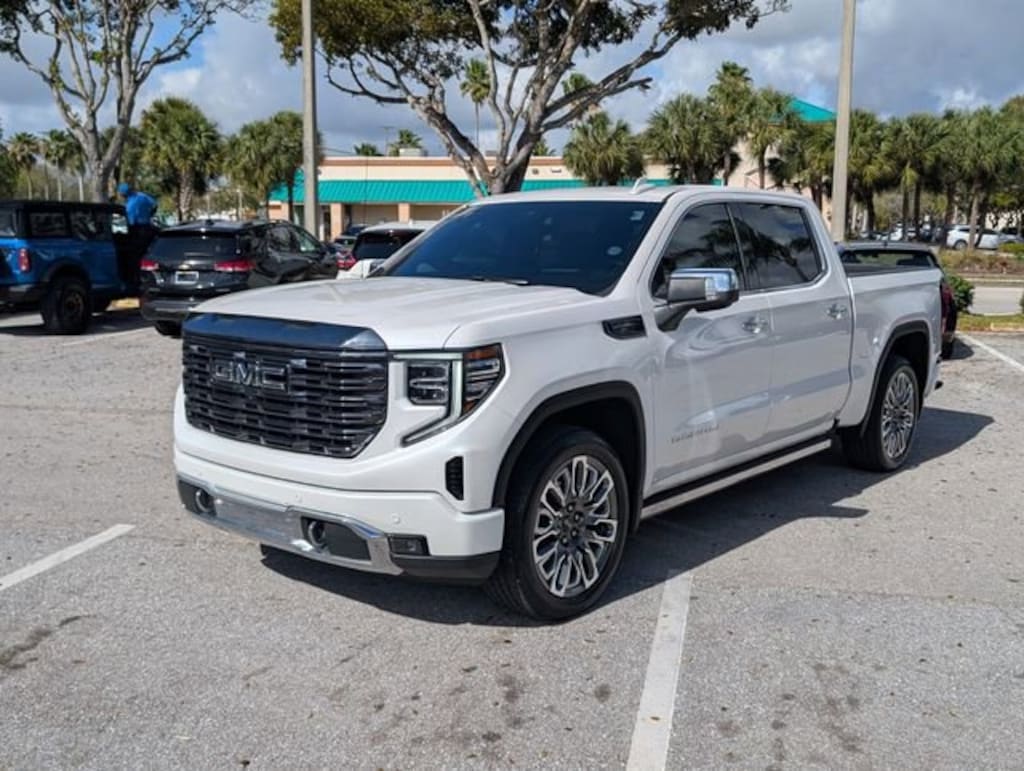 Certified. White Frost Tricoat 2023 GMC Sierra 1500 Denali Ultimate 4WD 10-Speed Automatic EcoTec3 6.2L V8 10-Speed Automatic, 4WD, Alpine Umber Leather.