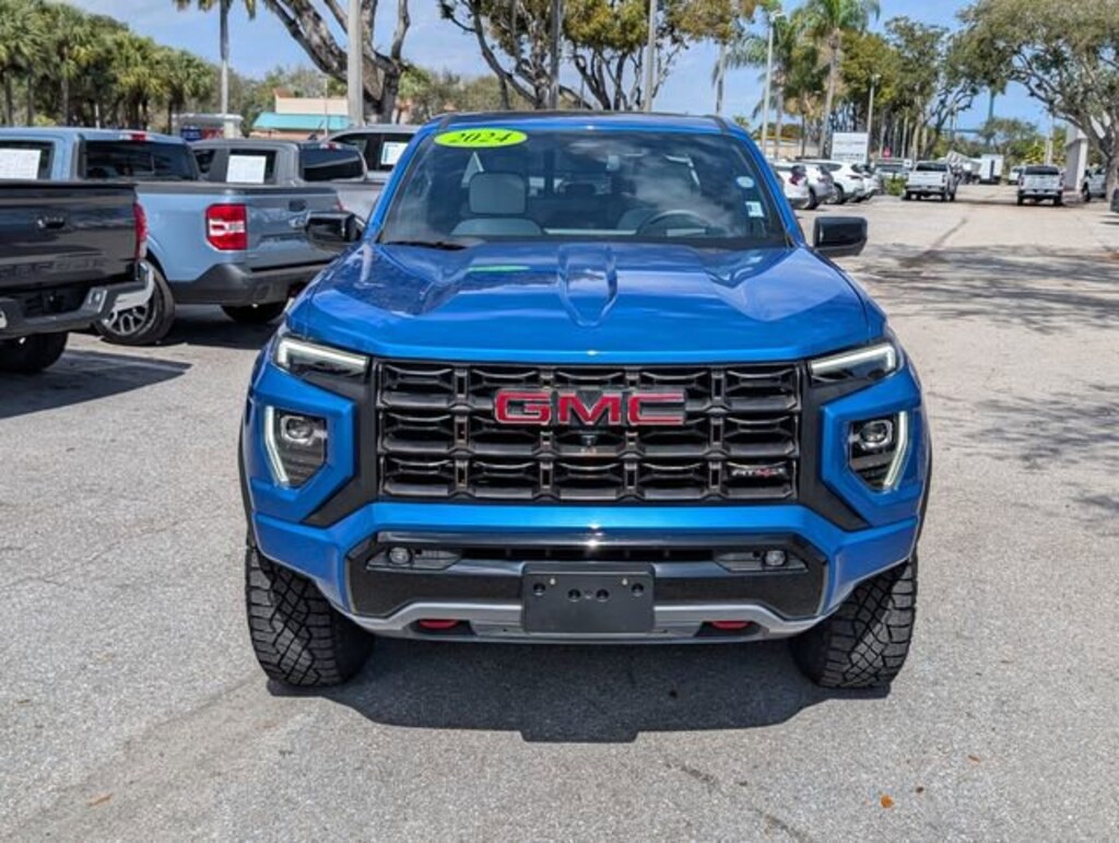 Certified. Dynamic Blue Metallic 2024 GMC Canyon AT4X 4WD 8-Speed Automatic 2.7L I4 Turbocharged DOHC 16V LEV3-SULEV30 310hp 4WD.WE DELIVER TO YOUR HOME OR OFFICE !! Preferred Equipment Group 4TX (120-Volt Bed Mounted Power Outlet, 2 Rear USB Ports in Center Console (Charge-Only), 220 Amps Alternator, 6-Way Power Passenger Seat Adjuster, 8-Way Power Driver Seat Adjuster, Adaptive Cruise Control, Automatic Emergency Braking, Canyon Pro Safety, Driver & Front Passenger Illuminated Visors, Driver & Front Passenger Ventilated Seats, Driver Memory, Driver Seatback Map Pocket, Driver-Selectable Full-Locking Front Differential, Driver-Selectable Full-Locking Rear Differential, Dual-Zone Automatic Air Conditioning, EZ-Lift & Lower Tailgate, Following Distance Indicator, Forward Collision Alert, Front LED Fog Lamps, Front Pedestrian & Bicyclist Braking, HD Surround Vision, Heated Driver & Front Passenger Seats, Heated Power-Adjustable Outside Mirrors, Heated Steering Wheel, Inside Rear-View Auto-Dimming Mirror, Integrated Trailer Brake Controller, IntelliBeam Automatic High Beam On/Off, Interior Overhead Courtesy Light w/Dual Reading Lamp, Lane Keep Assist w/Lane Departure Warning, Manual Rear-Sliding Window, Multicolor 6.3 Diagonal Head-Up Display, MultiStow Tailgate, Power Driver Lumbar Control Seat Adjuster, Power Passenger Lumbar Control Seat Adjuster, Premium 7-Speaker Bose Sound System, Rear Center Fold-Down Armrest w/2 Cupholders, Rear Cross Traffic Braking, Rear of Console 120-Volt Power Outlet, Rear Pedestrian Alert, Rear-Window Electric Defogger, Remote Vehicle Starter System, Safety Alert Seat, Spray-On Bedliner, Tailgate Keyed Cylinder Lock, Tilt & Telescopic Manual Steering Column, Trailering App System, Ultrasonic Rear Park Assist, and Wireless Charging), Trailering Package, GMC Certified Pre-Owned Certified, 4WD, 2 1st Row USB Charge/Data Ports, 3.42 Rear Axle Ratio, 4-Wheel Disc Brakes, 7 Speakers, ABS brakes, Air Conditioning, Alloy wheels, AM/FM radio, Apple CarPlay/Android Auto, Auto High-beam Headlights, Auto-dimming Rear-View mirror, Automatic Stop/Start, Automatic temperature control, Brake assist, Bumpers: body-color, Compass, Delay-off headlights, Driver door bin, Driver Mode Selector, Driver vanity mirror, Dual front impact airbags, Dual front side impact airbags, Electronic Stability Control, Front anti-roll bar, Front Bucket Seats, Front Center Armrest, Front dual zone A/C, Front fog lights, Front License Plate Kit, Front Passenger Seatback Map Pocket, Front reading lights, Front wheel independent suspension, Heads-Up Display, Heated door mirrors, Heated front seats, Heated steering wheel, Illuminated entry, Low tire pressure warning, Memory seat, Navigation system: OnStar, Occupant sensing airbag, Outside temperature display, Overhead airbag, Overhead console, Panic alarm, Passenger door bin, Passenger vanity mirror, Perforated Leather-Appointed Seat Trim, Power door mirrors, Power driver seat, Power Inner Sliding Glass Sunroof w/Manual Shade, Power passenger seat, Power steering, Power windows, Radio data system, Radio: 11.3 Diagonal Premium GMC Infotainment Sys, Rear reading lights, Rear seat center armrest, Rear step bumper, Rear window defroster, Remote keyless entry, Removable Front & Rear Off-Road Assist Steps (LPO), Security system, SiriusXM w/360L, Speed control, Speed-sensing steering, Split folding rear seat, Steering wheel mounted audio controls, Stop/Start System Disable Button Engine Control, Tachometer, Telescoping steering wheel, Tilt steering wheel, Traction control, Trip computer, Underbody Cameras, Variably intermittent wipers, Ventilated front seats, Wheels: 17 x 8 Black High Gloss Machined Finish, and Wireless Apple CarPlay/Wireless Android Auto.