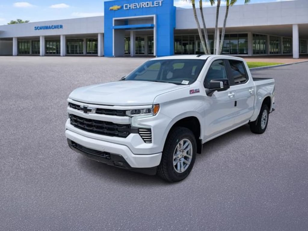 Summit White 2026 Chevrolet Silverado 1500 RST 4WD 10-Speed Automatic EcoTec3 5.3L V8 10-Speed Automatic, 4WD, Jet Black Leather.