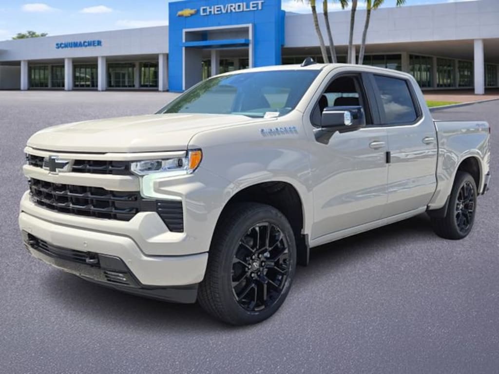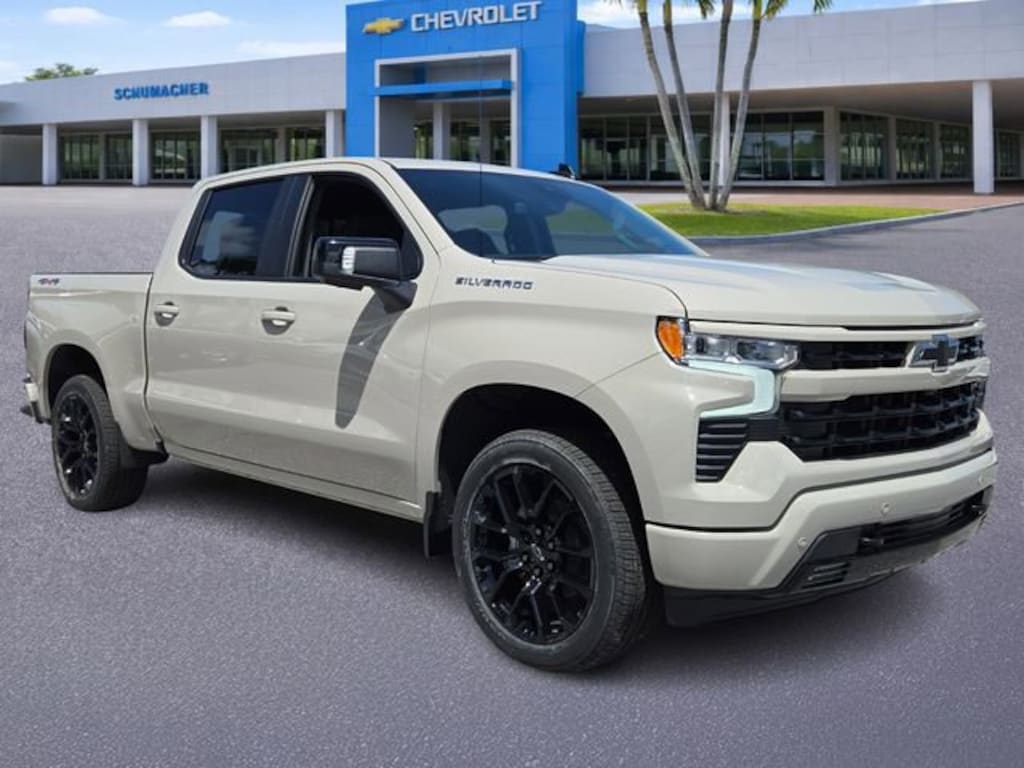 White Sands 2026 Chevrolet Silverado 1500 RST 4WD 10-Speed Automatic EcoTec3 5.3L V8 10-Speed Automatic, 4WD, Black Leather.WE DELIVER TO YOUR HOME OR OFFICE !!! Convenience Package (10-Way Power Driver Seat with Lumbar, 120-Volt Bed Mounted Power Outlet, 120-Volt Interior Power Outlet, Dual Rear USB Ports (charge Only), Dual-Zone Automatic Climate Control, Electric Rear-Window Defogger, Heated Driver and Front Outboard Passenger Seats, Heated Steering Wheel, Keyless Open and Start, LED Cargo Area Lighting, Manual Tilt/Telescoping Steering Column, Remote Vehicle Starter System, Theft Deterrent System (unauthorized Entry), and Wrapped Steering Wheel), Convenience Package II (Hitch Guidance with Hitch View, in-Vehicle Trailering System App, Power Sliding Rear Window with Rear Defogger, Premium Bose 7-Speaker Sound System, and Universal Home Remote), High Capacity Suspension Package, Leather Package (Leather-Appointed Front Seat Trim), Preferred Equipment Group 1SP (12.3 Multicolor Reconfigurable Digital Display, 40/20/40 Front Split-Bench Seat, 6-Speaker Audio System, All-Star Edition, Auto-Locking Rear Differential, Bluetooth® For Phone, Cloth Seat Trim, Color-Keyed Carpeting Floor Covering, Deep-Tinted Glass, Electronic Cruise Control, EZ Lift Power Lock and Release Tailgate, Front Frame-Mounted Black Recovery Hooks, Front LED Fog Lamps, Front Rubberized Vinyl Floor Mats, HD Rear Vision Camera, Heated Power-Adjustable Outside Mirrors, High Gloss Black Mirror Caps, Inside Rearview Mirror with Tilt, Integrated Trailer Brake Controller, OnStar Services Capable, Power Front Windows with Driver Express Up/Down, Power Front Windows with Passenger Express Down, Power Rear Windows with Express Down, Rear 60/40 Folding Bench Seat (folds Up), Rear Rubberized-Vinyl Floor Mats, SiriusXM with 360L Trial Subscription, Standard Tailgate, Steering Wheel Audio Controls, Teen Driver, Tire Pressure Monitoring System, Wheels: 18 x 8.5 Bright Silver Painted Aluminum, and Wi-Fi Hot Spot Capable), Protection Package (Chevytec Spray-on Black Bedliner and Rear Wheelhouse Liners), Safety Package (HD Surround Vision, Perimeter Lighting, Rear Cross Traffic Braking, Rear Pedestrian Alert, Trailer Camera Provisions, Trailer Side Blind Zone Alert, and Ultrasonic Front and Rear Park Assist), Standard Suspension Package, Trailering Package (Hitch Guidance), Up-Level Rear Seat with Storage Package, 10-Speed Automatic, 4WD, Black Leather, 170 Amp Alternator, 2 USB Data Ports, 220 Amp Alternator, 3.23 Rear Axle Ratio, 4-Wheel Disc Brakes, 6 Speakers, ABS brakes, Adaptive Cruise Control, Air Conditioning, Alloy wheels, AM/FM radio: SiriusXM with 360L, Apple CarPlay/Android Auto, Auto High-beam Headlights, Automatic Emergency Braking, Automatic temperature control, Auxiliary External Transmission Oil Cooler, Brake assist, Bumpers: body-color, Compass, Delay-off headlights, Driver door bin, Driver vanity mirror, Dual front impact airbags, Dual front side impact airbags, Electronic Stability Control, Electronic Transmission Range Selector Shifter, Emergency communication system: OnStar, External Engine Oil Cooler, Floor Mounted Center Console, Following Distance Indicator, Forward Collision Alert, Front anti-roll bar, Front Bucket Seats, Front Center Armrest w/Storage, Front dual zone A/C, Front fog lights, Front Pedestrian Braking, Front reading lights, Front wheel independent suspension, Fully automatic headlights, Heated door mirrors, Heated front seats, Heated steering wheel, Illuminated entry, IntelliBeam Automatic High Beam on/Off, Lane Keep Assist with Lane Departure Warning, Low tire pressure warning, Occupant sensing airbag, Outside temperature display, Overhead airbag, Overhead console, Panic alarm, Passenger door bin, Passenger vanity mirror, Power door mirrors, Power driver seat, Power steering, Power Sunroof, Power windows, Prem Price includes: $4250 - Chevrolet Consumer Cash Program. Exp. 04/30/2026 $500 - Chevrolet Bonus Cash. Exp. 04/30/2