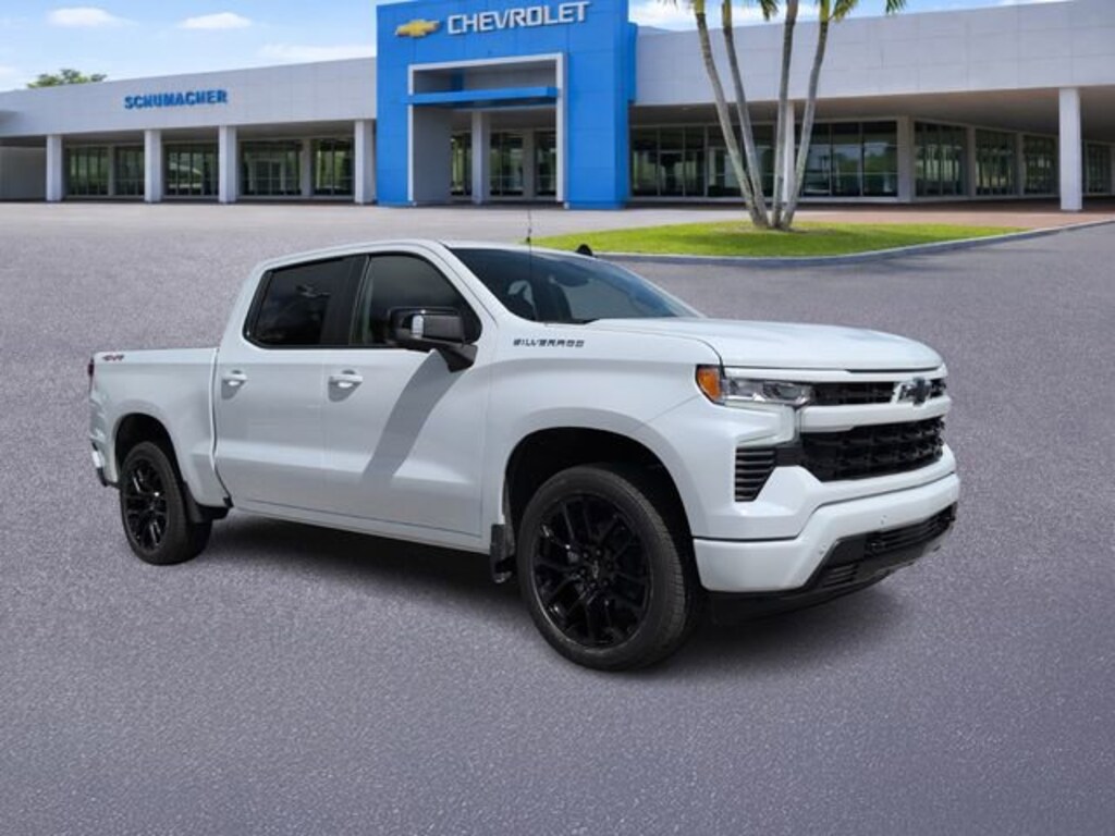 Summit White 2026 Chevrolet Silverado 1500 RST 4WD 10-Speed Automatic EcoTec3 5.3L V8 10-Speed Automatic, 4WD, Black Leather.