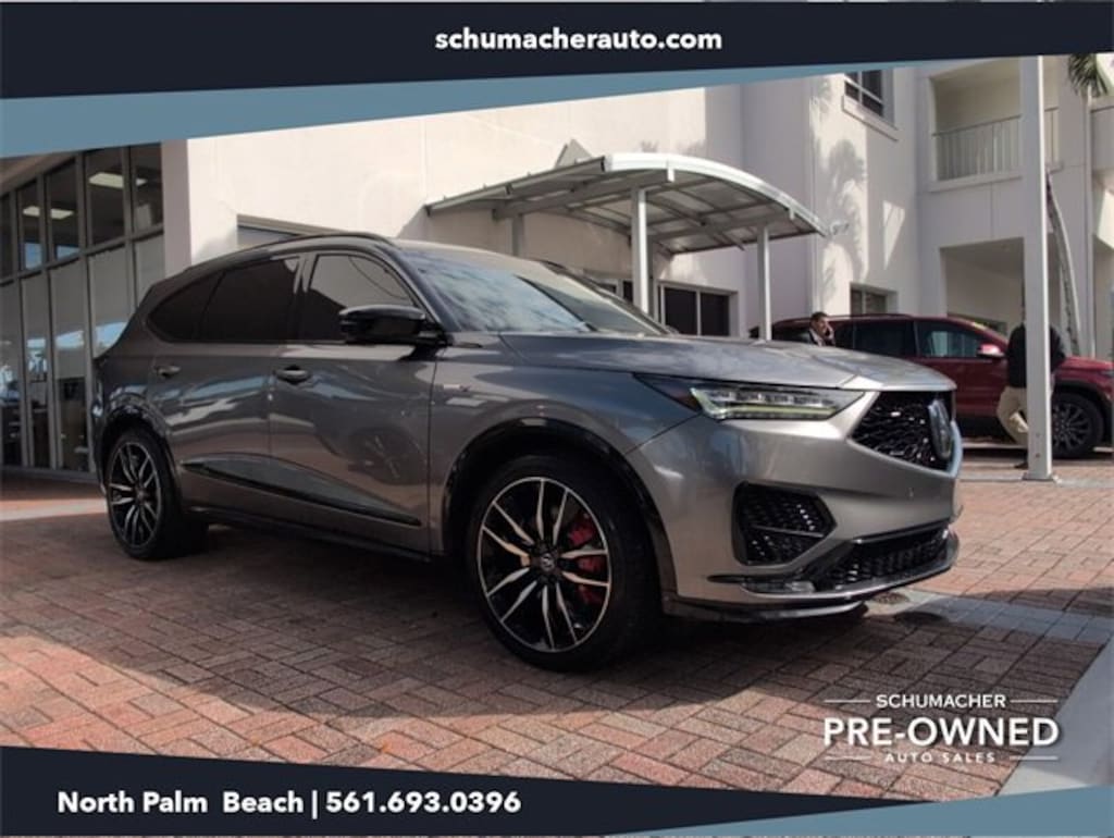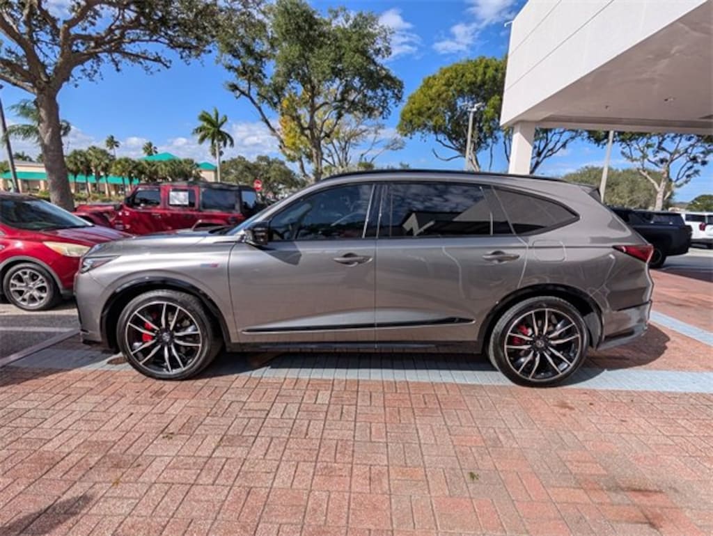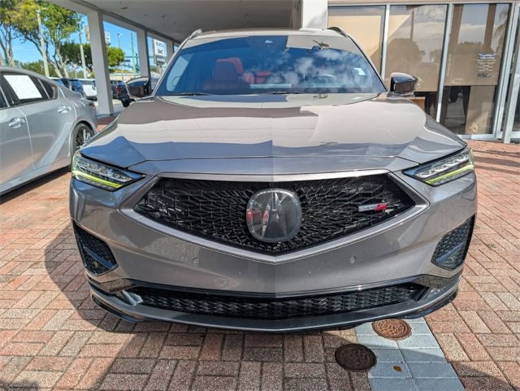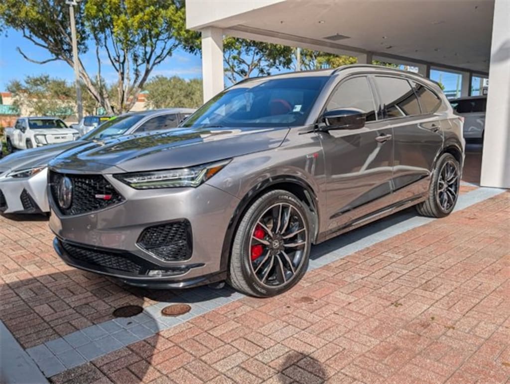 Gray 2022 Acura MDX Type S w/Advance Package SH-AWD AWD 10-Speed Automatic 3.0L V6 DOHC 24V Ebony w/Leatherette Trimmed Seats.WE DELIVER TO YOUR HOME OR OFFICE !! Ebony w/Leatherette Trimmed Seats, 3rd row seats: split-bench, 4-Wheel Disc Brakes, 4.17 Axle Ratio, A/V remote: CabinControl, ABS brakes, Adaptive suspension, Air Conditioning, Alloy wheels, AM/FM radio: SiriusXM, Anti-whiplash front head restraints, Apple CarPlay/Android Auto, Audio memory, Auto High-beam Headlights, Auto tilt-away steering wheel, Auto-dimming Rear-View mirror, Auto-leveling suspension, Automatic temperature control, Brake assist, Bumpers: body-color, Compass, Delay-off headlights, Driver door bin, Driver vanity mirror, Dual front impact airbags, Dual front side impact airbags, Electronic Stability Control, Emergency communication system: AcuraLink, Four wheel independent suspension, Front anti-roll bar, Front Bucket Seats, Front Center Armrest, Front dual zone A/C, Front fog lights, Front reading lights, Fully automatic headlights, Garage door transmitter: HomeLink, Heads-Up Display, Heated & Ventilated Front Sport Seats, Heated door mirrors, Heated front seats, Heated rear seats, Heated steering wheel, HVAC memory, Illuminated entry, Knee airbag, Lane departure: Lane Keeping Assist System (LKAS) active, Leather steering wheel, Low tire pressure warning, Memory seat, Navigation system: Acura Navigation System with 3D View, Occupant sensing airbag, Outside temperature display, Overhead airbag, Overhead console, Panic alarm, Passenger door bin, Passenger vanity mirror, Perforated Premium Milano Leather Trimmed Seats, Power door mirrors, Power driver seat, Power Liftgate, Power moonroof, Power passenger seat, Power steering, Power windows, Premium audio system: Acura/ELS Studio 3D Signature Edition, Radio data system, Radio: ELS Studio 3D Signature Ed Prem Aud System, Rain sensing wipers, Rear air conditioning, Rear anti-roll bar, Rear reading lights, Rear seat center armrest, Rear window defroster, Rear window wiper, Remote keyless entry, Roof rack: rails only, Security system, Speed control, Speed-sensing steering, Speed-Sensitive Wipers, Split folding rear seat, Spoiler, Sport steering wheel, Steering wheel memory, Steering wheel mounted audio controls, Tachometer, Telescoping steering wheel, Tilt steering wheel, Traction control, Trip computer, Turn signal indicator mirrors, Variably intermittent wipers, Ventilated front seats, and Wheels: 21 x 9.5 Aluminum Alloy. Odometer is 2384 miles below market average!