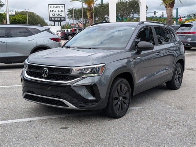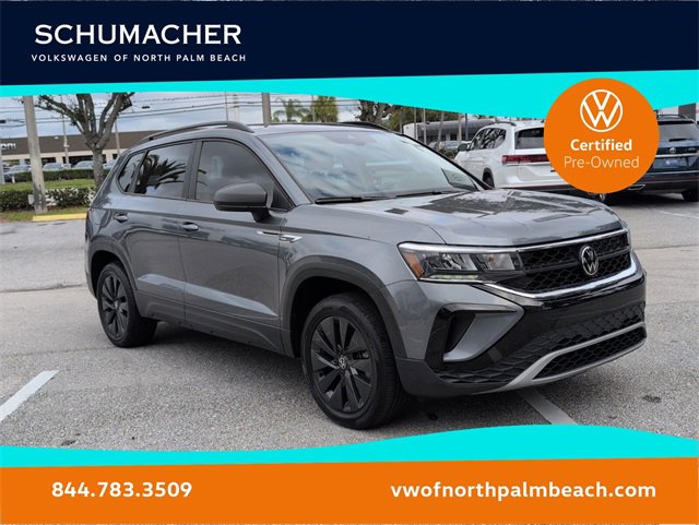 Certified. Platinum Gray Metallic 2023 Volkswagen Taos 1.5T S FWD 8-Speed Automatic with Tiptronic 1.5L I4 Turbocharged DOHC 16V LEV3-SULEV30 158hpWE DELIVER TO YOUR HOME OR OFFICE !! Convenience Features (Automatic Rain-Sensing Front Wipers, Heated Leatherette-Wrapped Steering Wheel, and Light Assist (High Beam Control For Headlights)), Driver Assistance Package (Adaptive Cruise Control (ACC) w/Stop & Go, Emergency Assist, Lane Assist (Lane Keeping System), and Travel Assist (Semi-Automated Driving Assistance)), Volkswagen Certified Pre-Owned Certified, 3.23 Axle Ratio, 4-Wheel Disc Brakes, 6 Speakers, ABS brakes, Air Conditioning, Alloy wheels, AM/FM radio, Brake assist, Bumpers: body-color, Carpeted MojoMats (Set of 4), Cloth Seating Surfaces, Compass, Delay-off headlights, Driver door bin, Driver vanity mirror, Dual front impact airbags, Dual front side impact airbags, Electronic Stability Control, Emergency communication system: VW Car-Net Safe & Secure 5-year, Exterior Parking Camera Rear, First Aid Kit, Front anti-roll bar, Front Bucket Seats, Front Center Armrest, Front reading lights, Front Strut Rear Torsion Beam Suspension, Front wheel independent suspension, Fully automatic headlights, Illuminated entry, Low tire pressure warning, Occupant sensing airbag, Outside temperature display, Overhead airbag, Overhead console, Panic alarm, Passenger door bin, Passenger vanity mirror, Power door mirrors, Power steering, Power windows, Radio data system, Radio: Composition Color AM/FM, Rear anti-roll bar, Rear seat center armrest, Rear Sensors Credit, Rear window defroster, Rear window wiper, Remote keyless entry, Roadside Assistance Kit, Roof rack: rails only, Speed control, Speed-sensing steering, Split folding rear seat, Spoiler, Steering wheel mounted audio controls, Tachometer, Telescoping steering wheel, Tilt steering wheel, Traction control, Trip computer, Variably intermittent wipers, VW Car-Net Safe & Secure 5-Year Plan, and Wheels: 17 Silver Painted Alloy. 28/36 City/Highway MPGVolkswagen Certified Pre-Owned Details:* Roadside Assistance* 100+ Point Inspection* Warranty Deductible: $50* Model Year 2020 and Newer Vehicles: 2-Year or 24,000-Mile (whichever occurs first) Comprehensive Limited Warranty. Model Year 2019 Vehicles: 1-Year or 12,000-Mile (whichever comes first) Comprehensive Limited Warranty. Electric Vehicles Model Year 2019 & Newer: 3-Year or 36,000-Mile (whichever comes first) Comprehensive Limited Warranty. 2 Years of 24-Hour Roadside Assistance, Three Months of SiriusXM Platinum Plan Trial Subscription.* Vehicle History