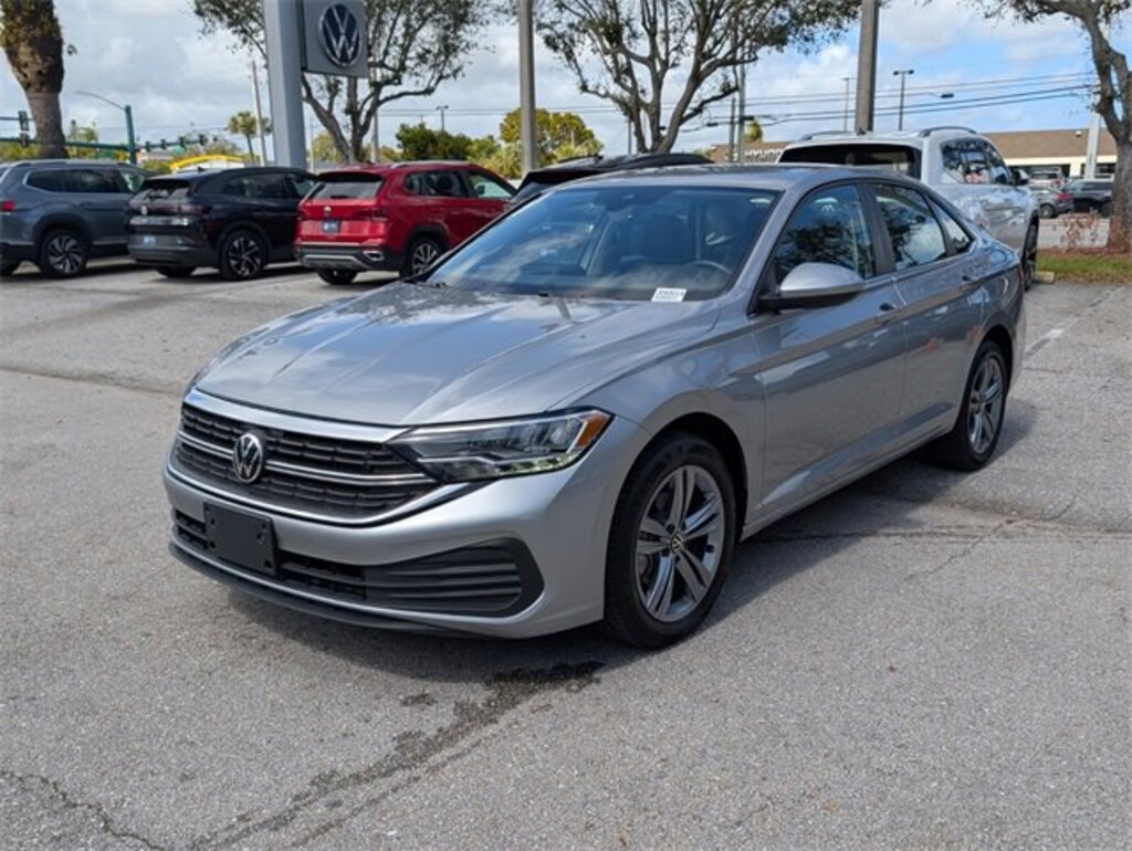 Certified. Pyrite Silver Metallic 2024 Volkswagen Jetta 1.5T SE FWD 8-Speed Automatic with Tiptronic 1.5L I-4 DI DOHC Turbocharged Titan Black w/V-Tex Leatherette Seat Trim.